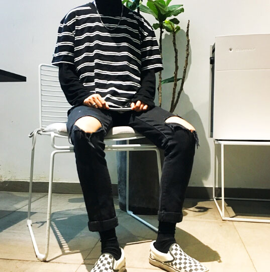 Free Shipping-90'S STRIPED TEE IN BLACK