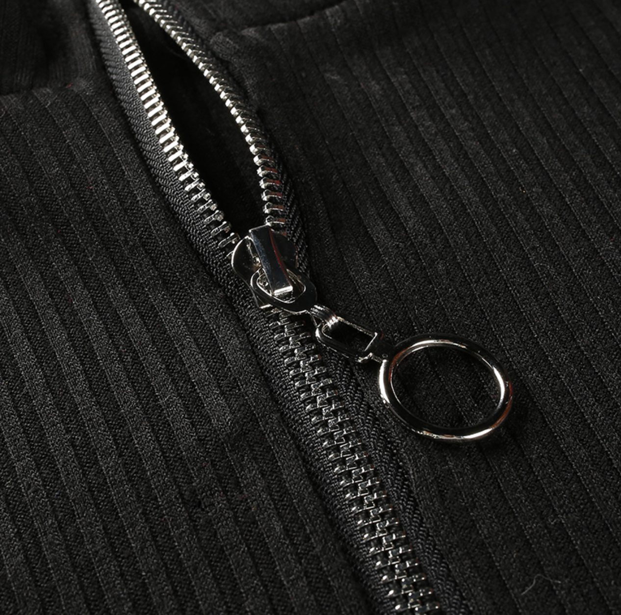 Free Shipping-SOFT GRUNGE ZIP CROPPED SHIRT