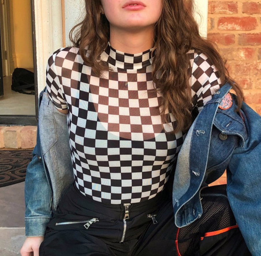 Free Shipping-CHECKER MESH TOP