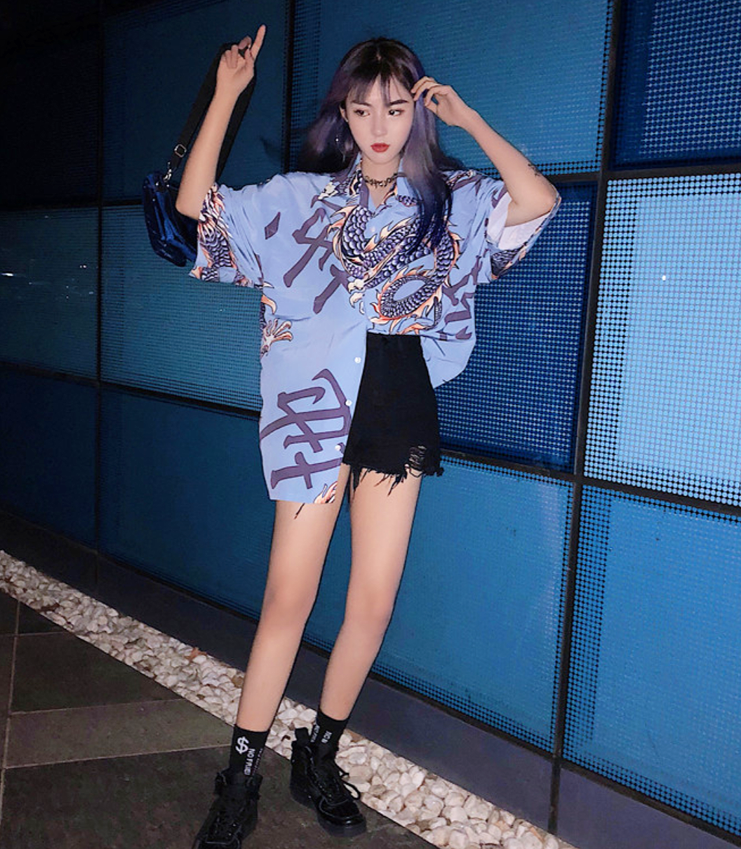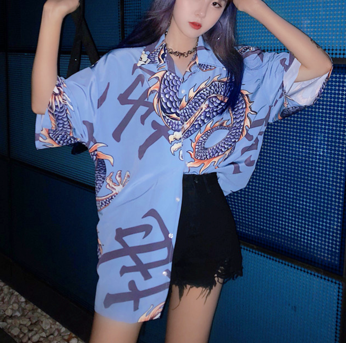 Free Shipping-JAPANESE VINTAGE DRAGON BLOUSE