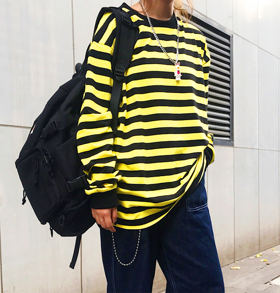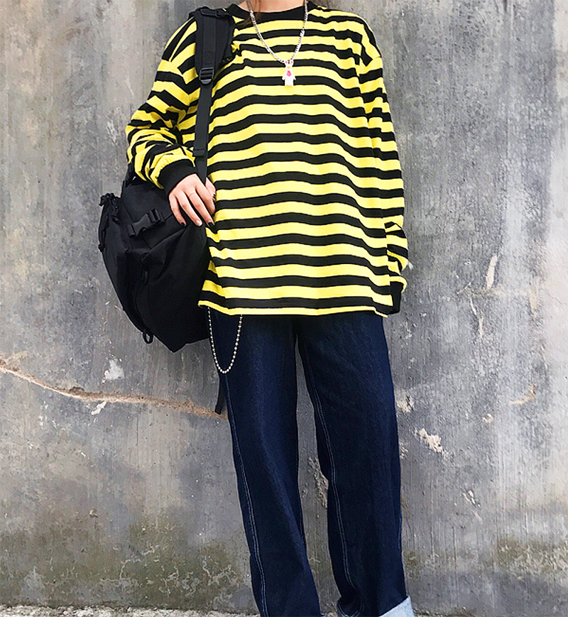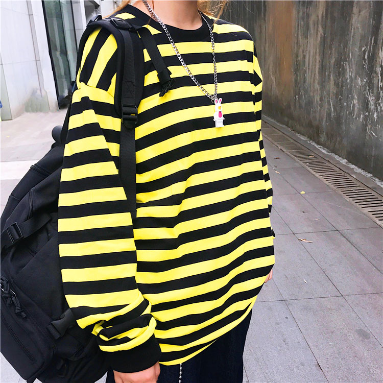 Free Shipping-RETRO YELLOW AND BLACK LONG SLEEVE TEE