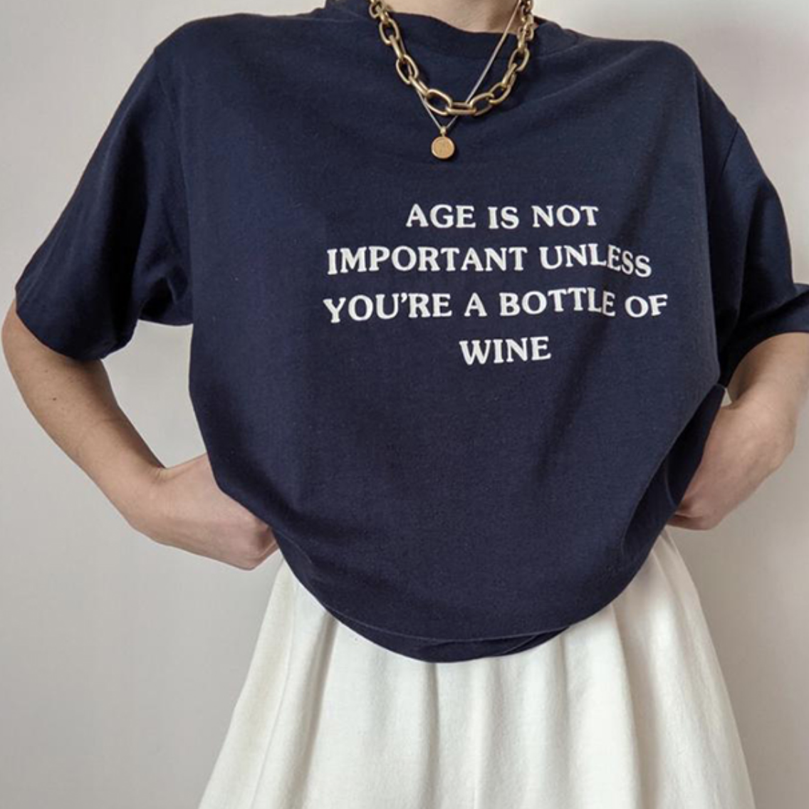 Free Shipping-"AGE IS NOT IMPORTANT UNLESS YOU'RE A BOTTLE OF WINE" TEE