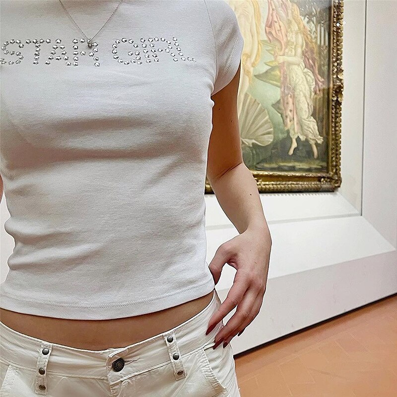 Free Shipping-RHINESTONE STAR GIRL CROP TOP
