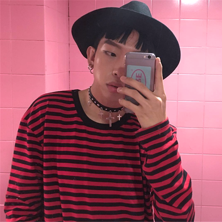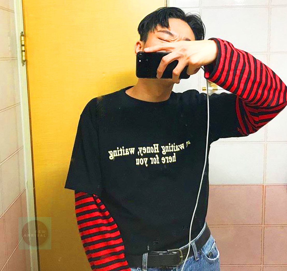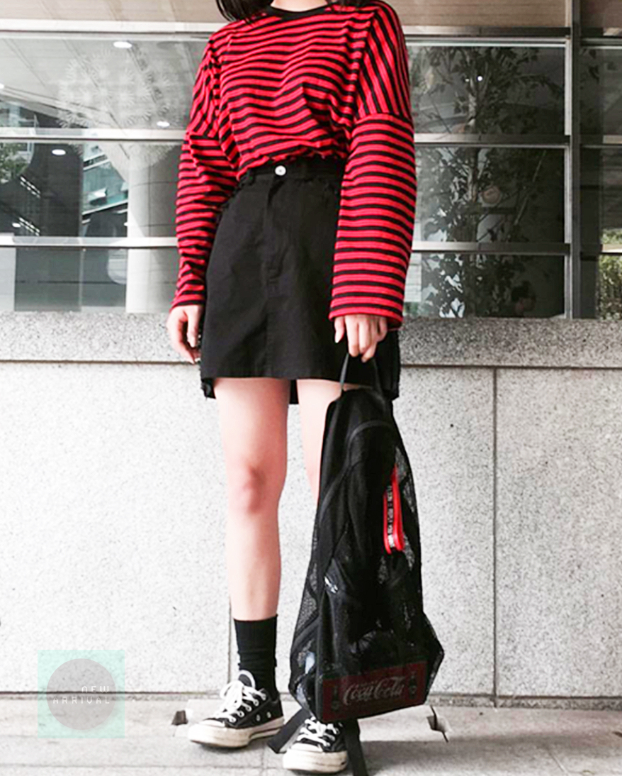 Free Shipping-90'S RED / WHITE LONG SLEEVE TEE