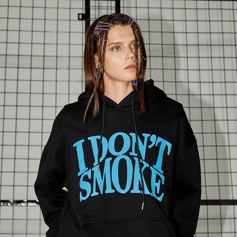 Free Shipping-"I DON'T SMOKE" BLUE LETTER HOODIE