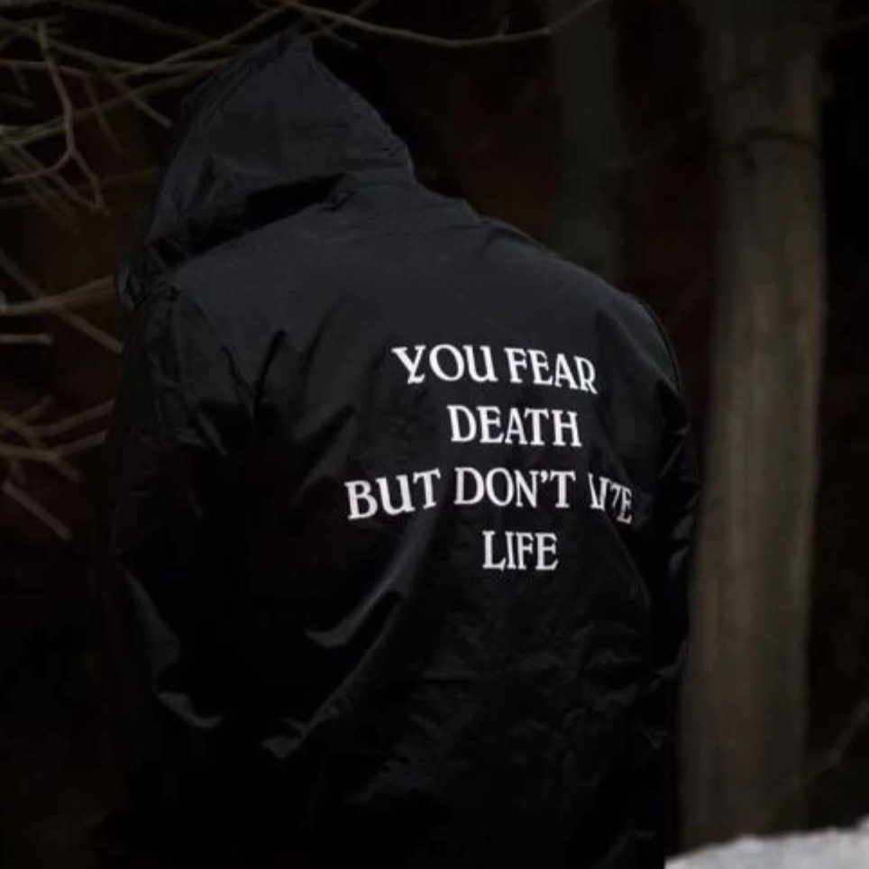Free Shipping-"YOU FEAR DEATH BUT DON'T LIVE LIFE" HOODIE
