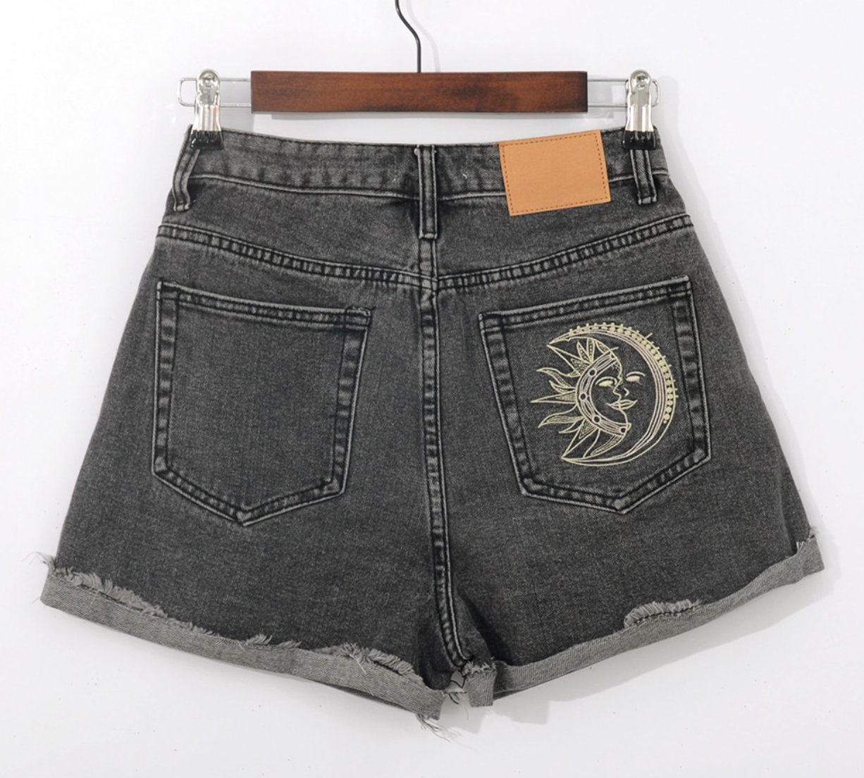 Free Shipping-90's MOON & SUN DENIM SHORTS