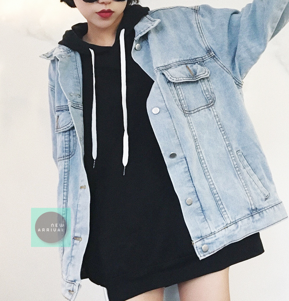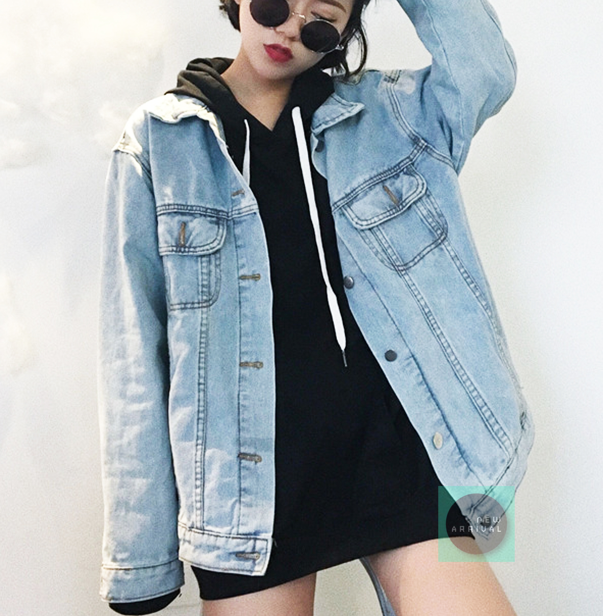 Free Shipping-VINTAGE MID WASH DENIM JACKET