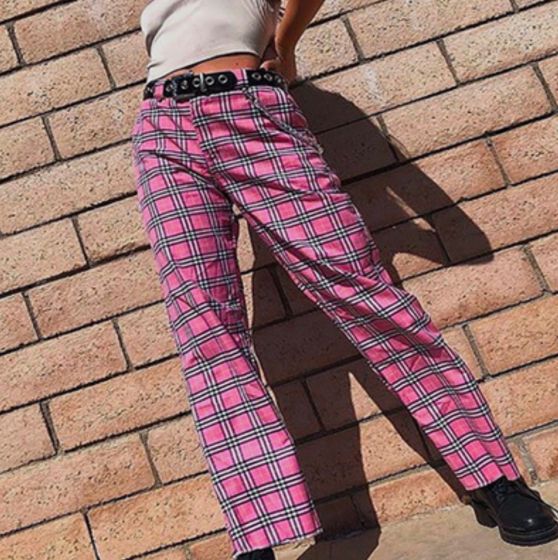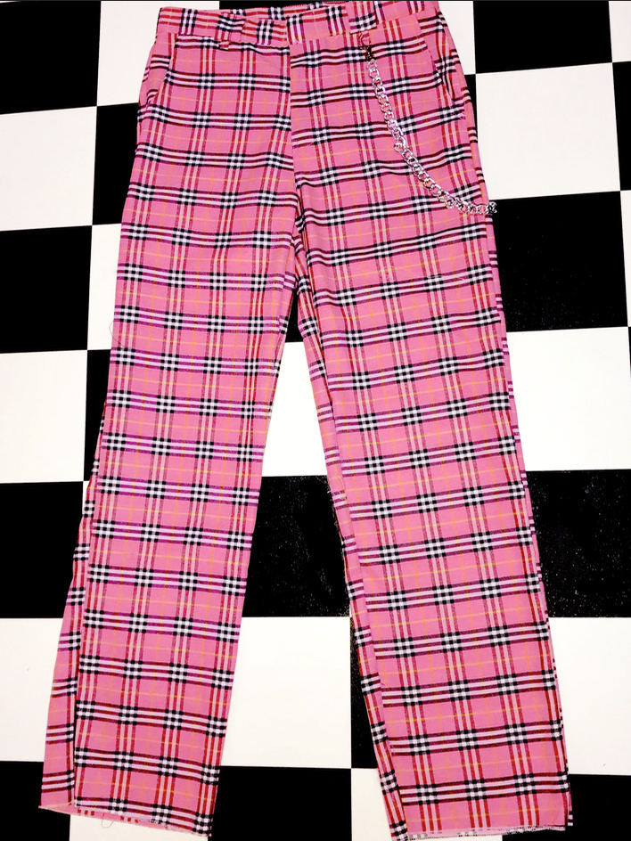 Free Shipping-CYBER PUNK PINKY TARTAN TROUSERS ( WITH CHAIN )