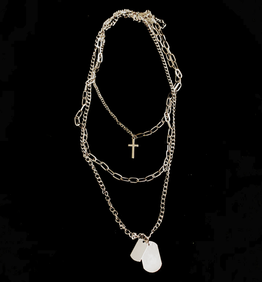 Free Shipping-CYBER PUNK CROSS LAYERED PENDANT NECKLACE