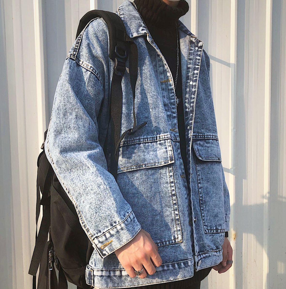 Free Shipping-90s MID WASH DENIM JACKET