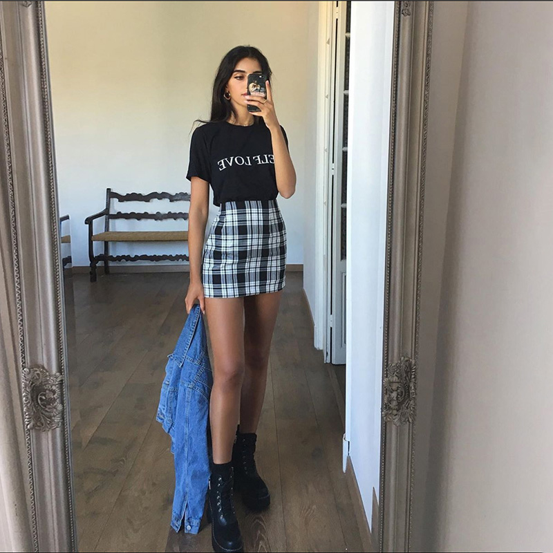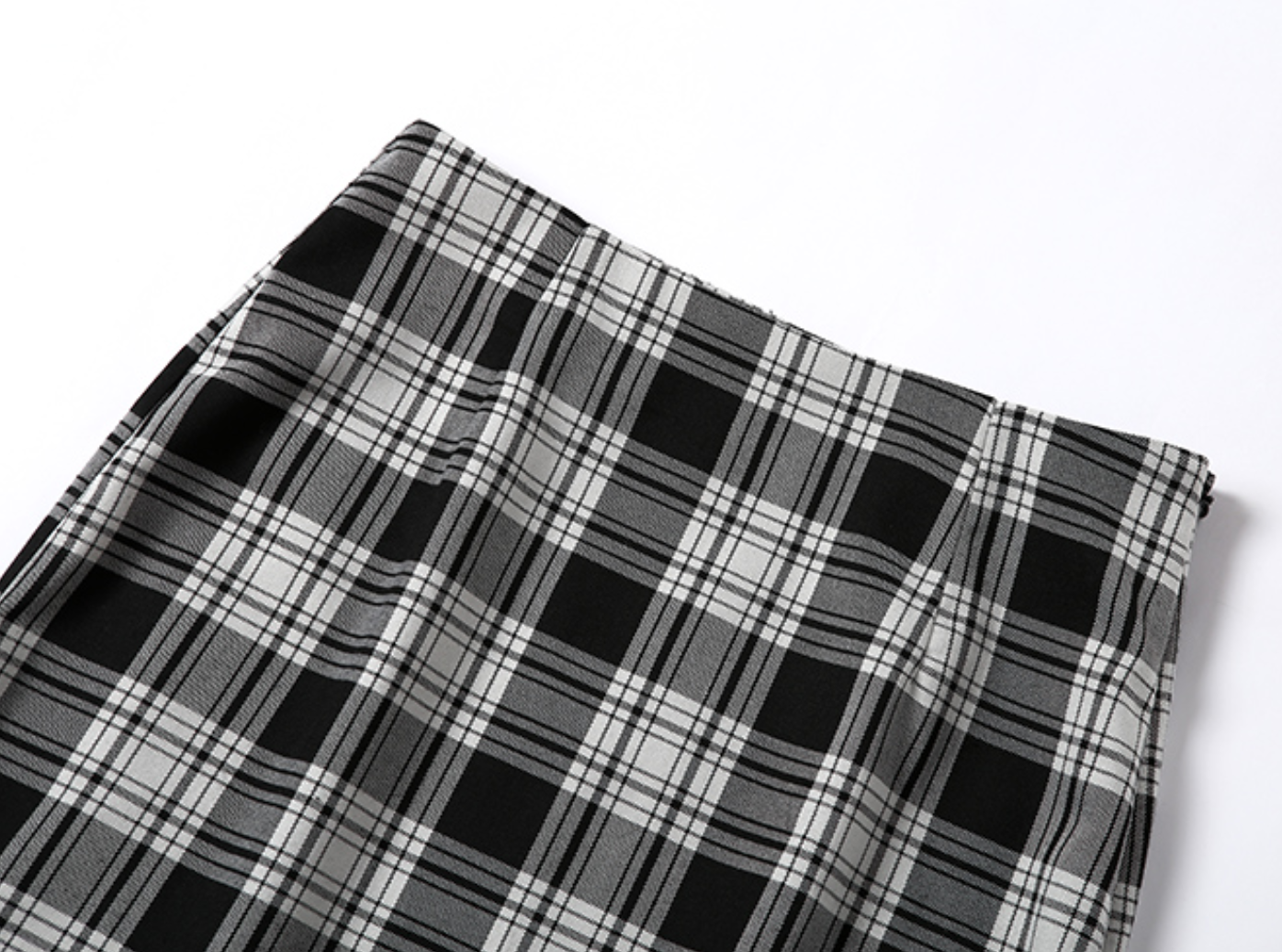 Free Shipping-BLACK AND WHITE PLAID SKIRT