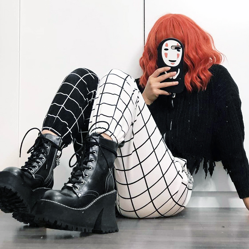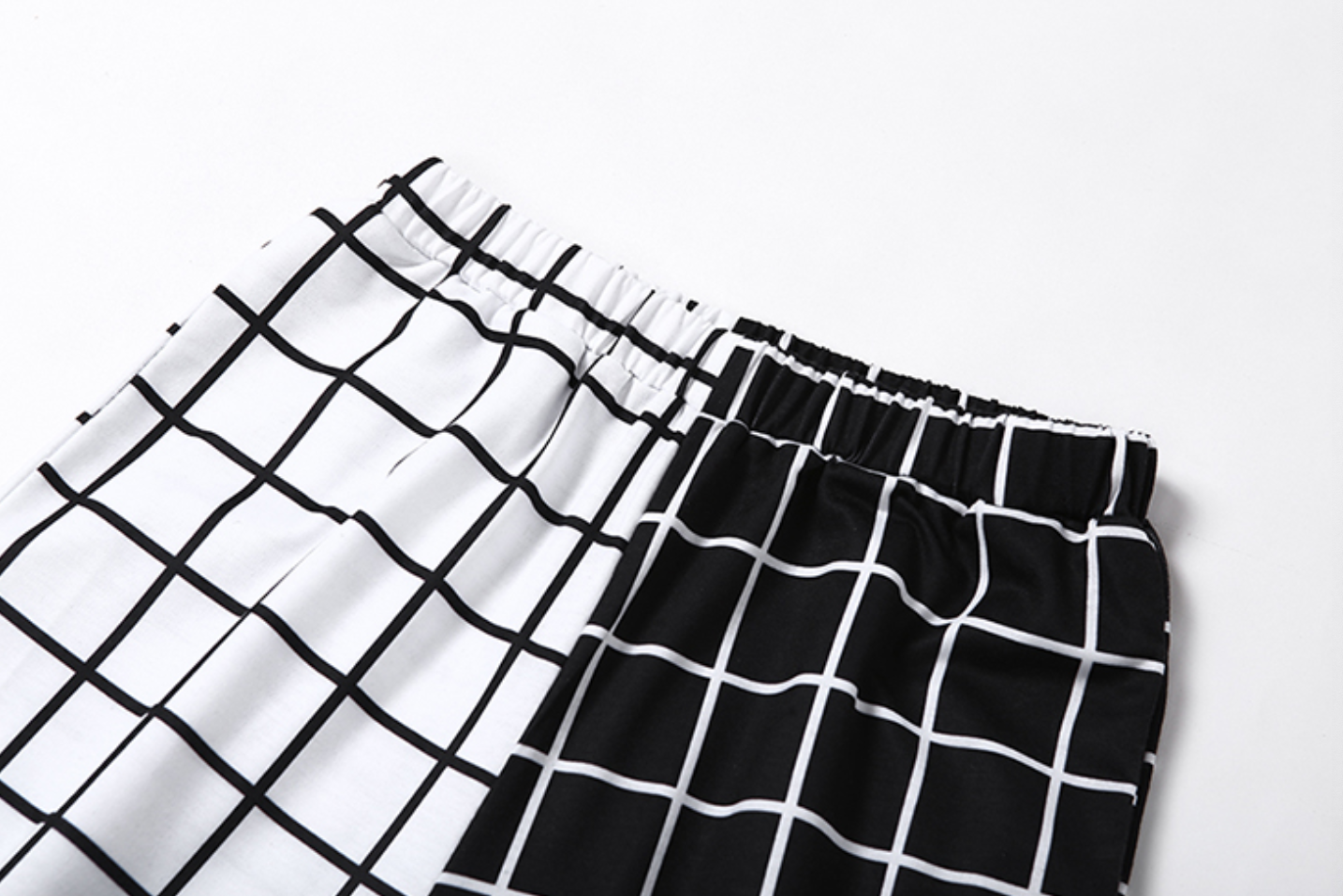 Free Shipping-BLACK AND WHITE GRID JOGGER