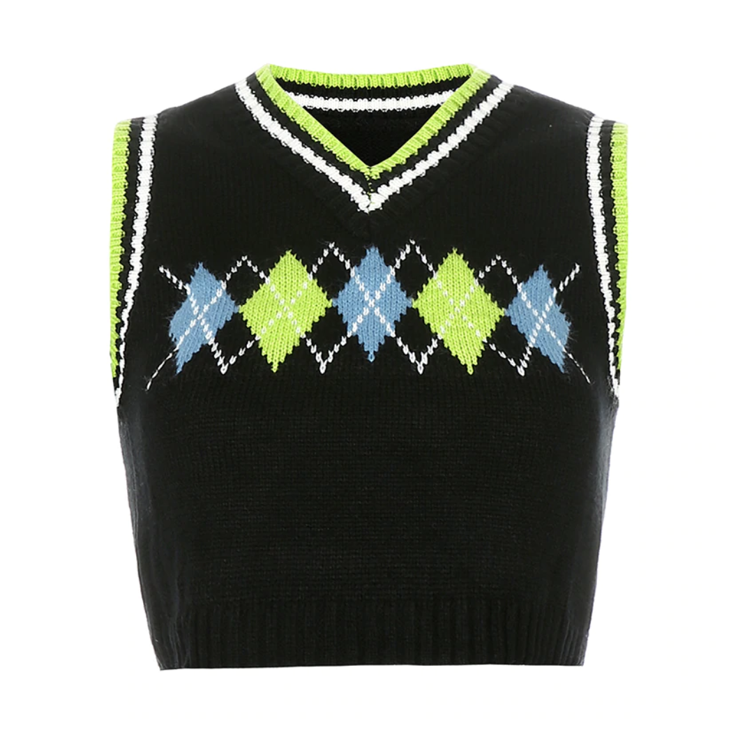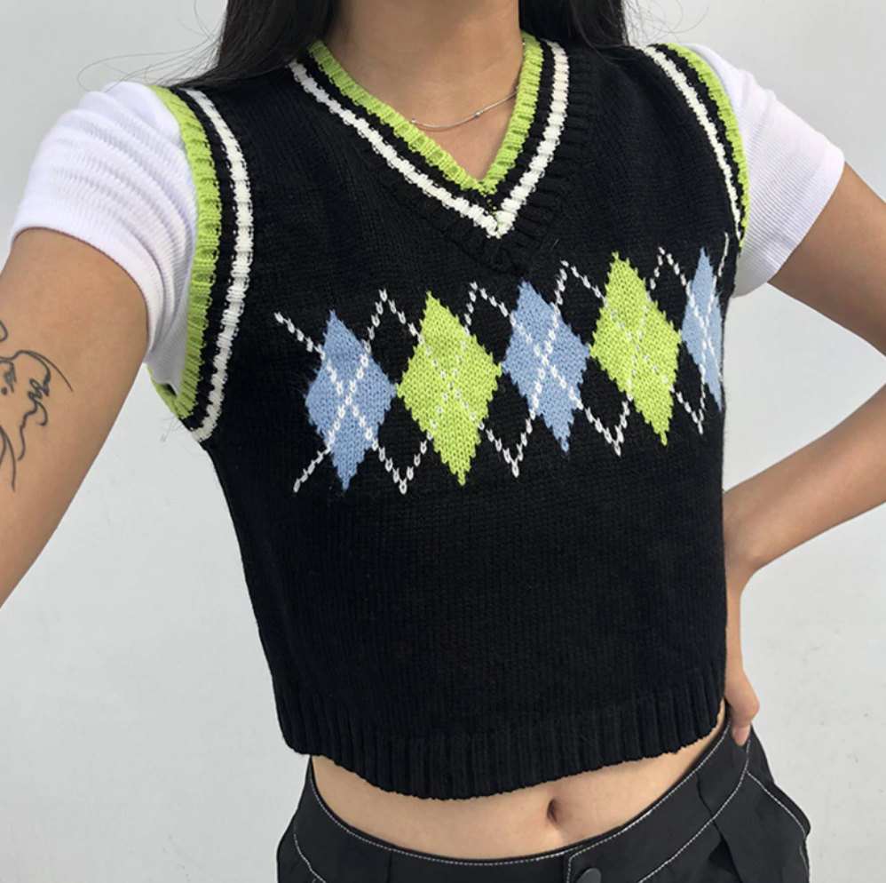 Free Shipping-90s ARGYLE VEST