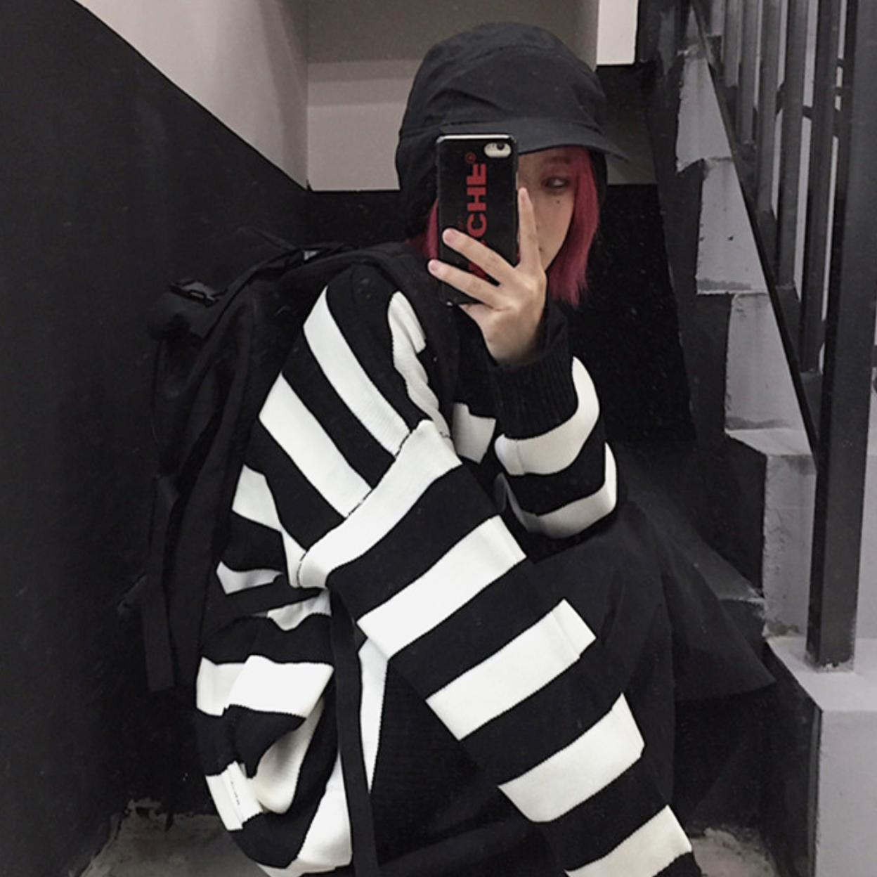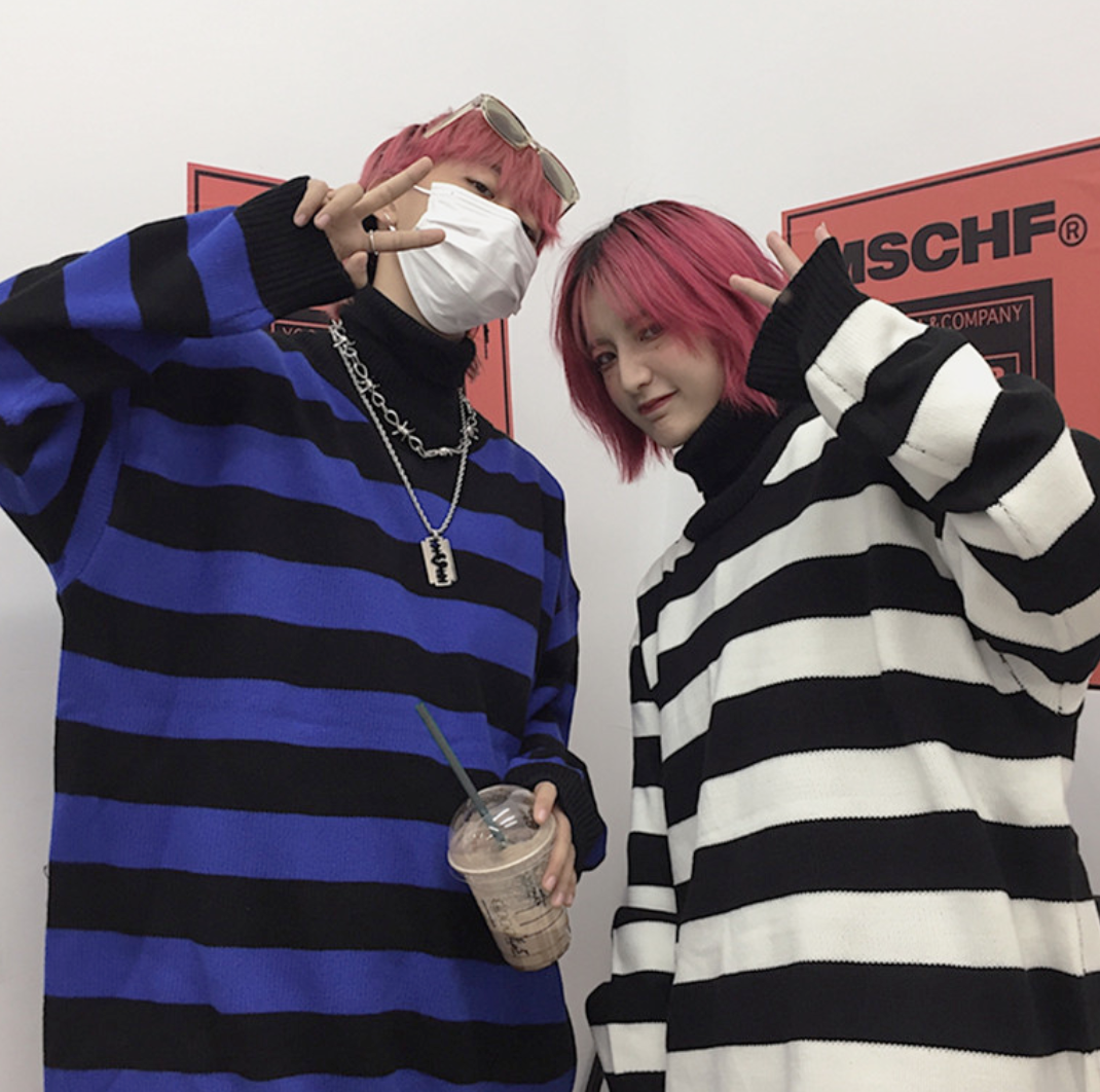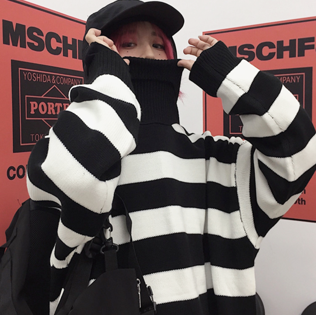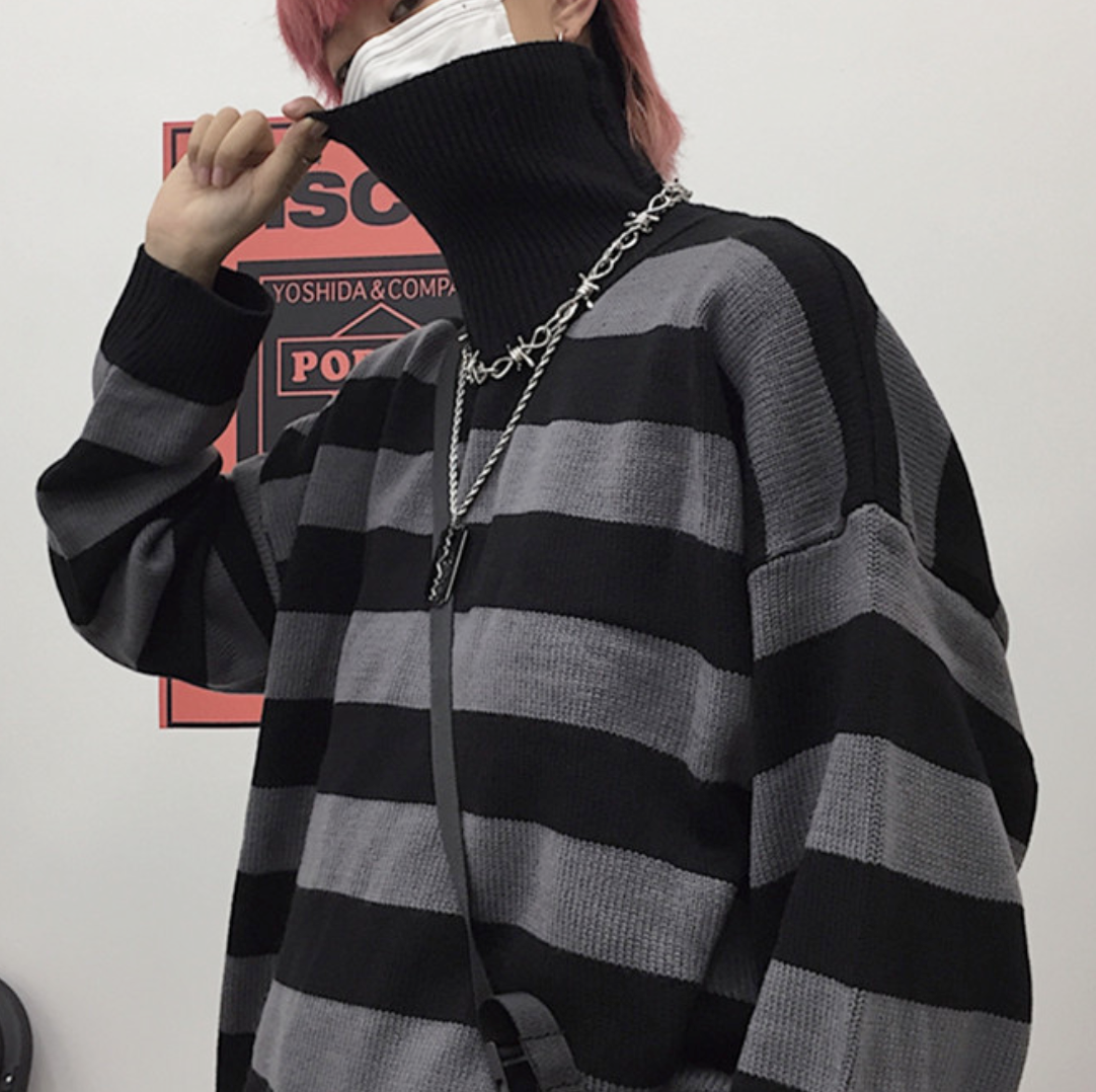 Free Shipping-90s STRIPED HIGH NECK SWEATER