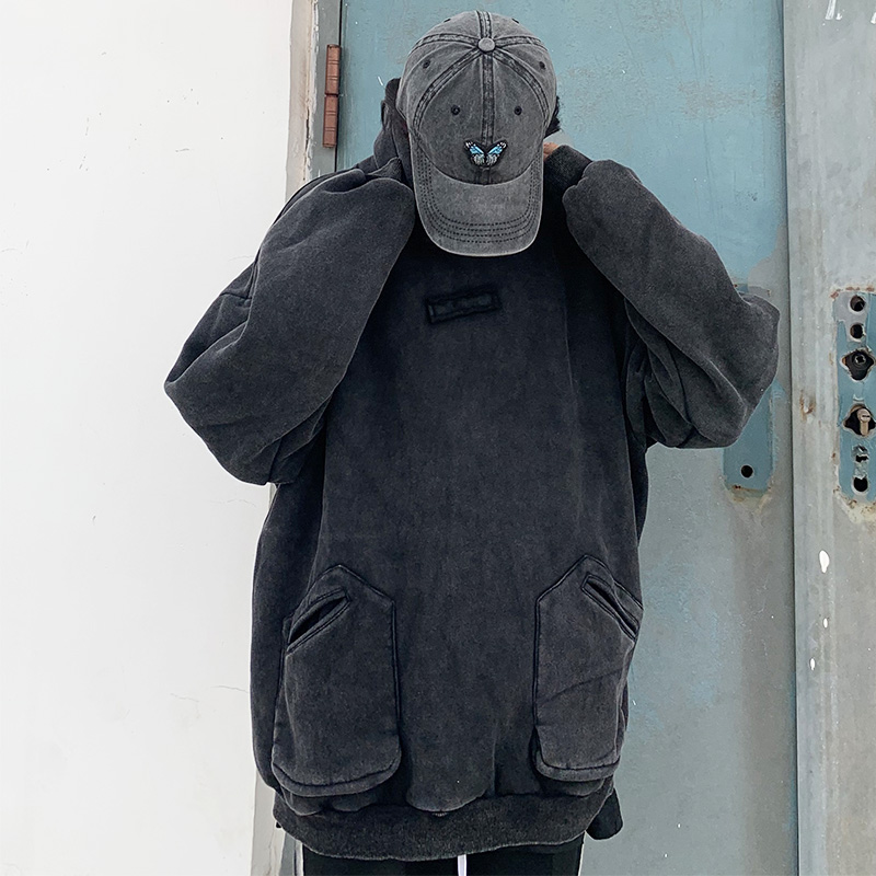 Free Shipping-DARK GREY ACID WASH HOODIE