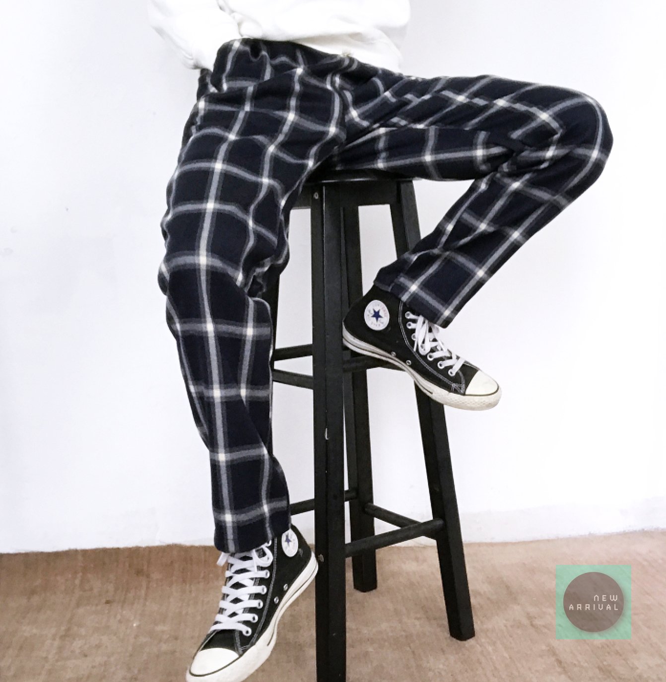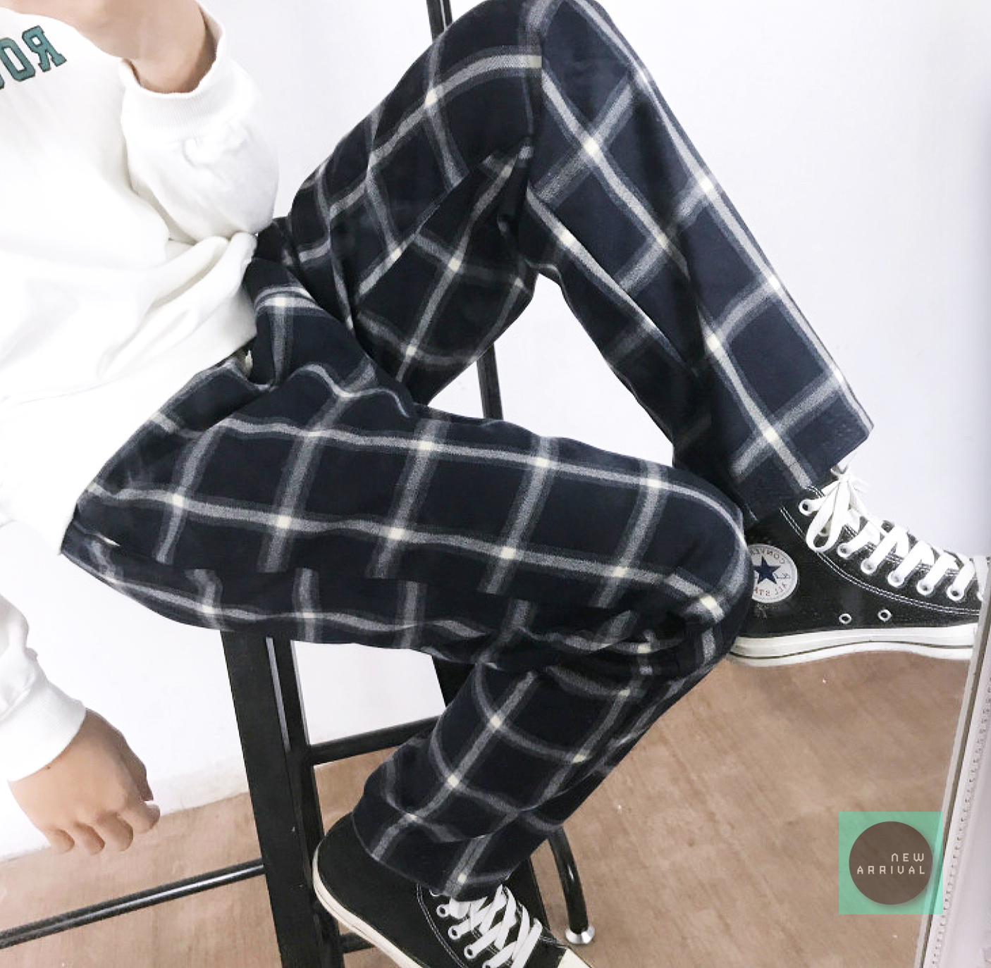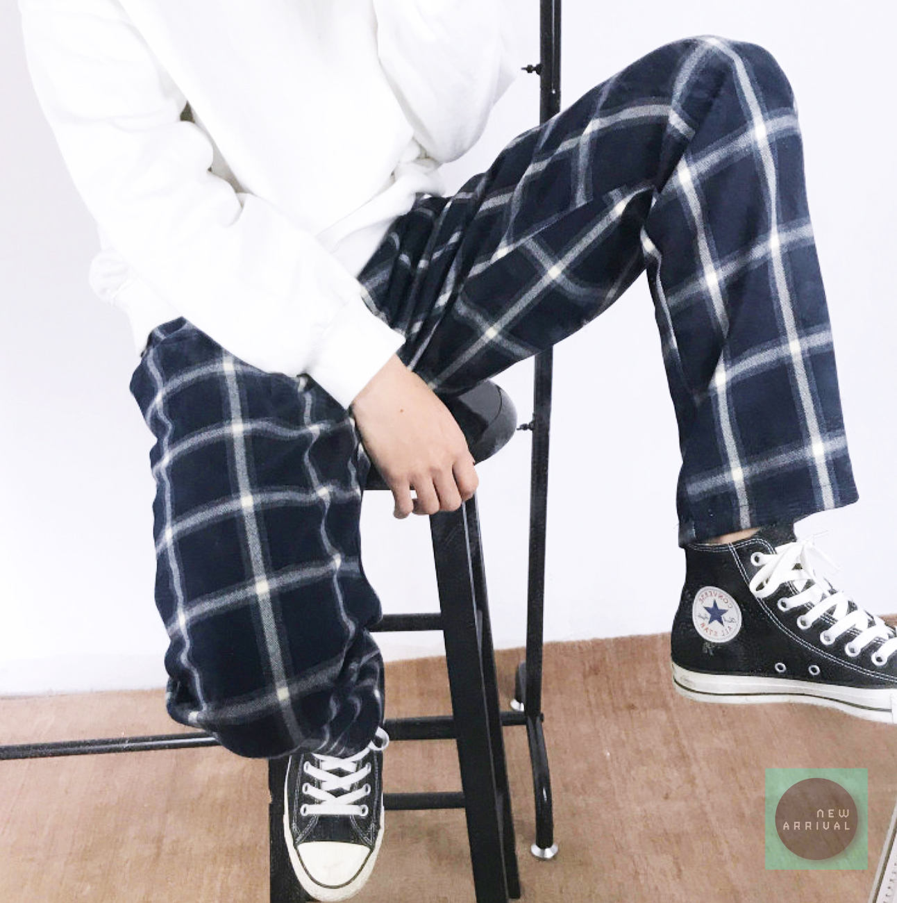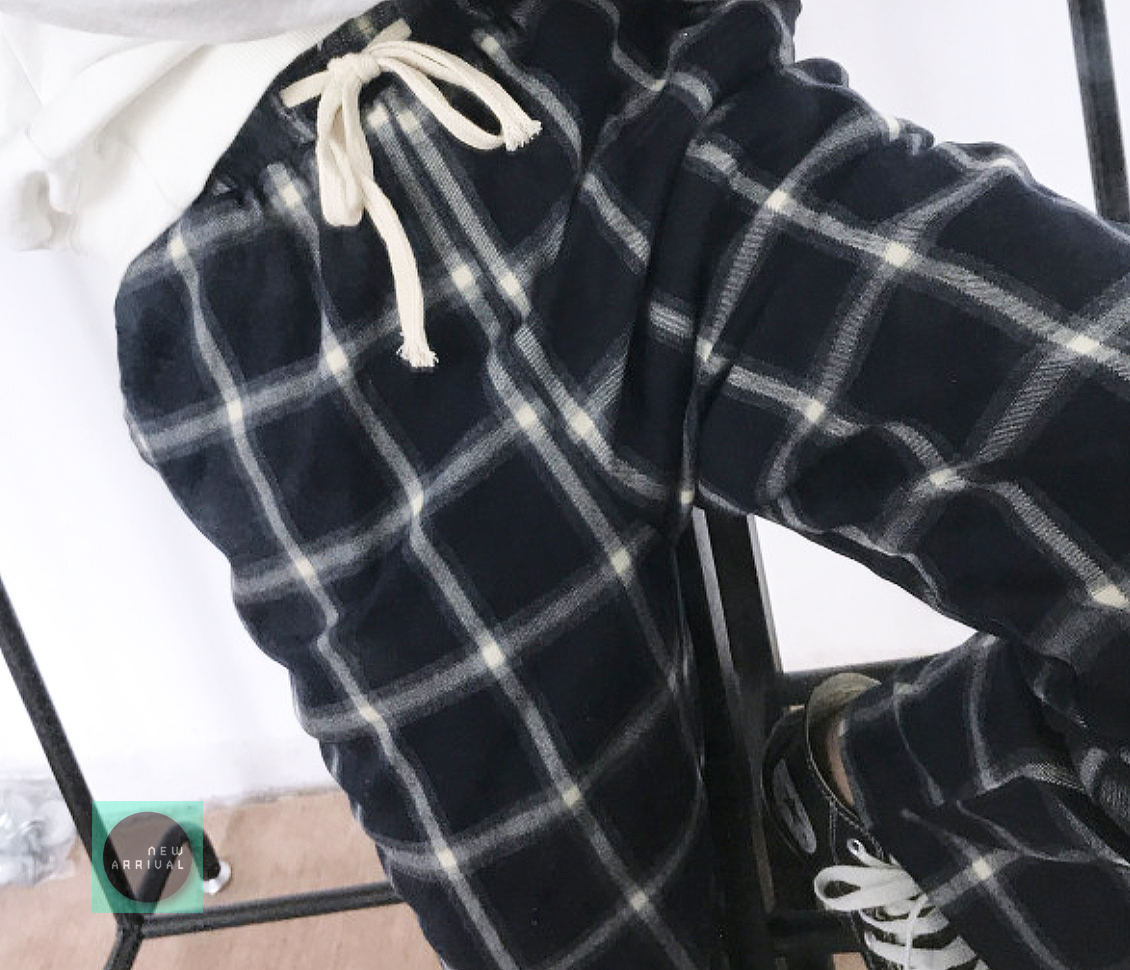 Free Shipping-VINTAGE CHECK RELAXED TROUSERS
