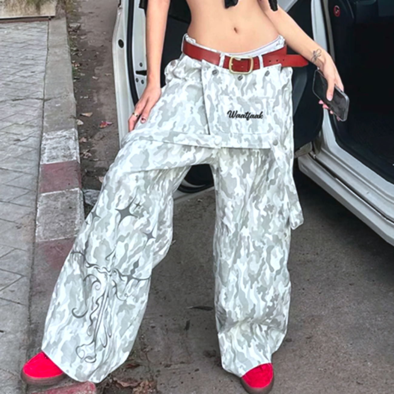 Free Shipping-CAMO BANDED LOOSE CARGO PANTS